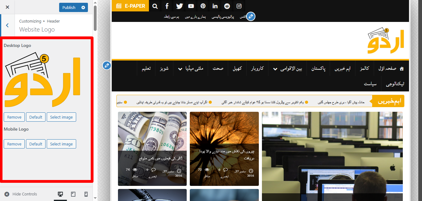 News Ticker: Turn ON/OFF the header news ticker.