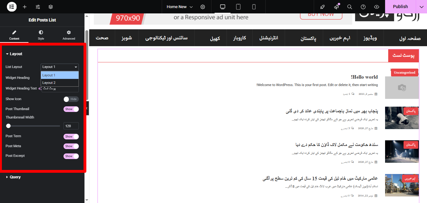The Post List Widget allows you to display your posts in a customizable list layout with options to control thumbnails, meta data, excerpts, and more.